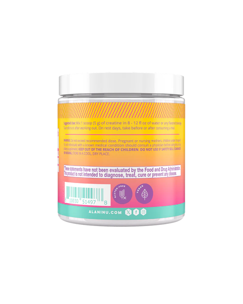 Designed to support muscle strength, mass, growth, and endurance, our Creatine powder gives your body a boost – without building bulk. Each scoop contains 5g of pure creatine and nothing else. No sugar, and no gluten.